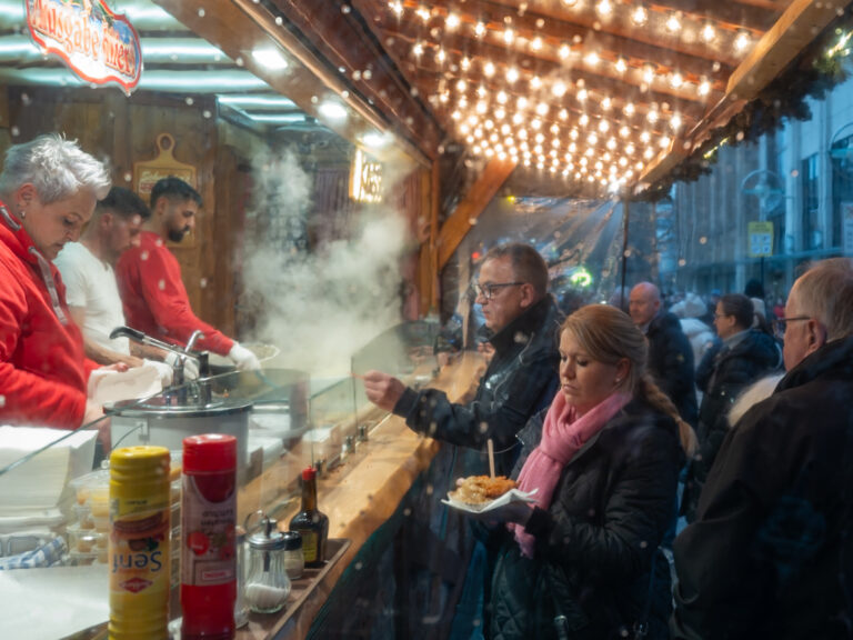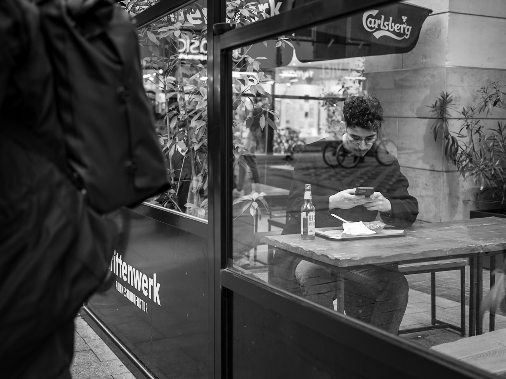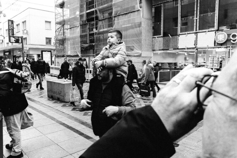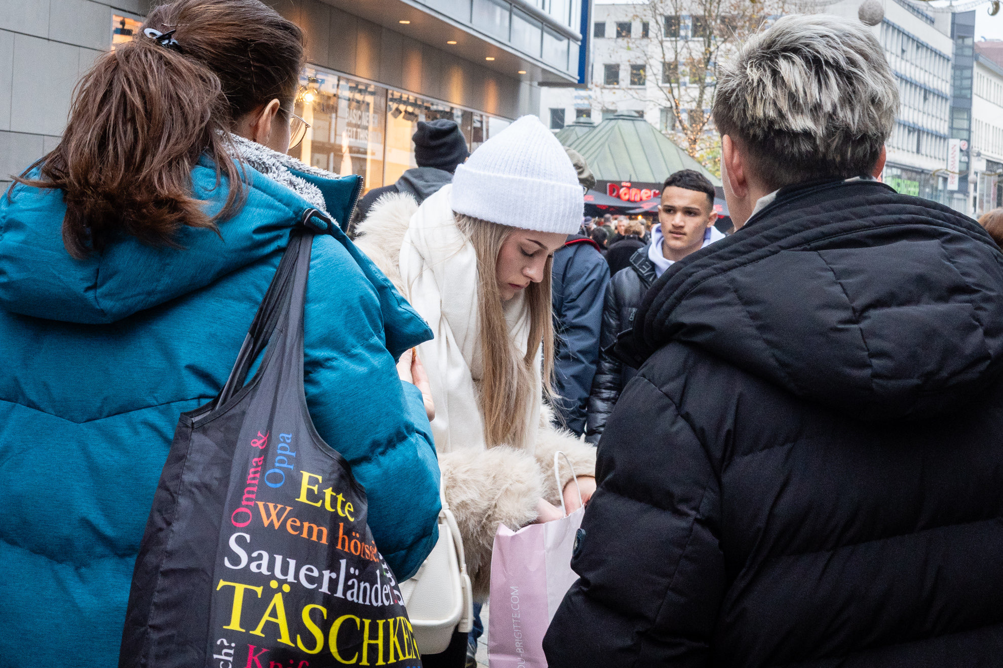 Die Route führte uns mitten durch das Herz der City. Zwischen den Menschenmassen in der Einkaufsstraße und der weihnachtlichen Atmosphäre am Stadtgarten gab es unzählige Motive zu entdecken. Street Photography im Ruhrgebiet bedeutet eben auch, das echte, ungefilterte Leben zwischen Beton und Lichterglanz zu dokumentieren.
