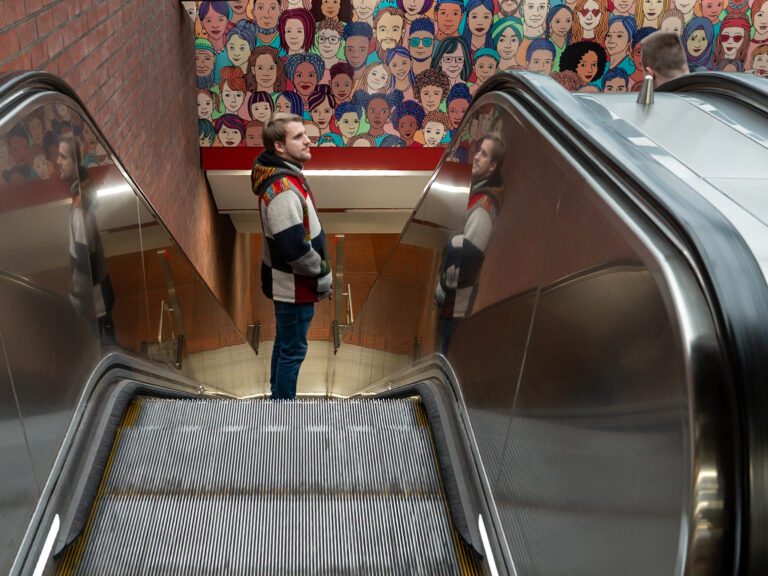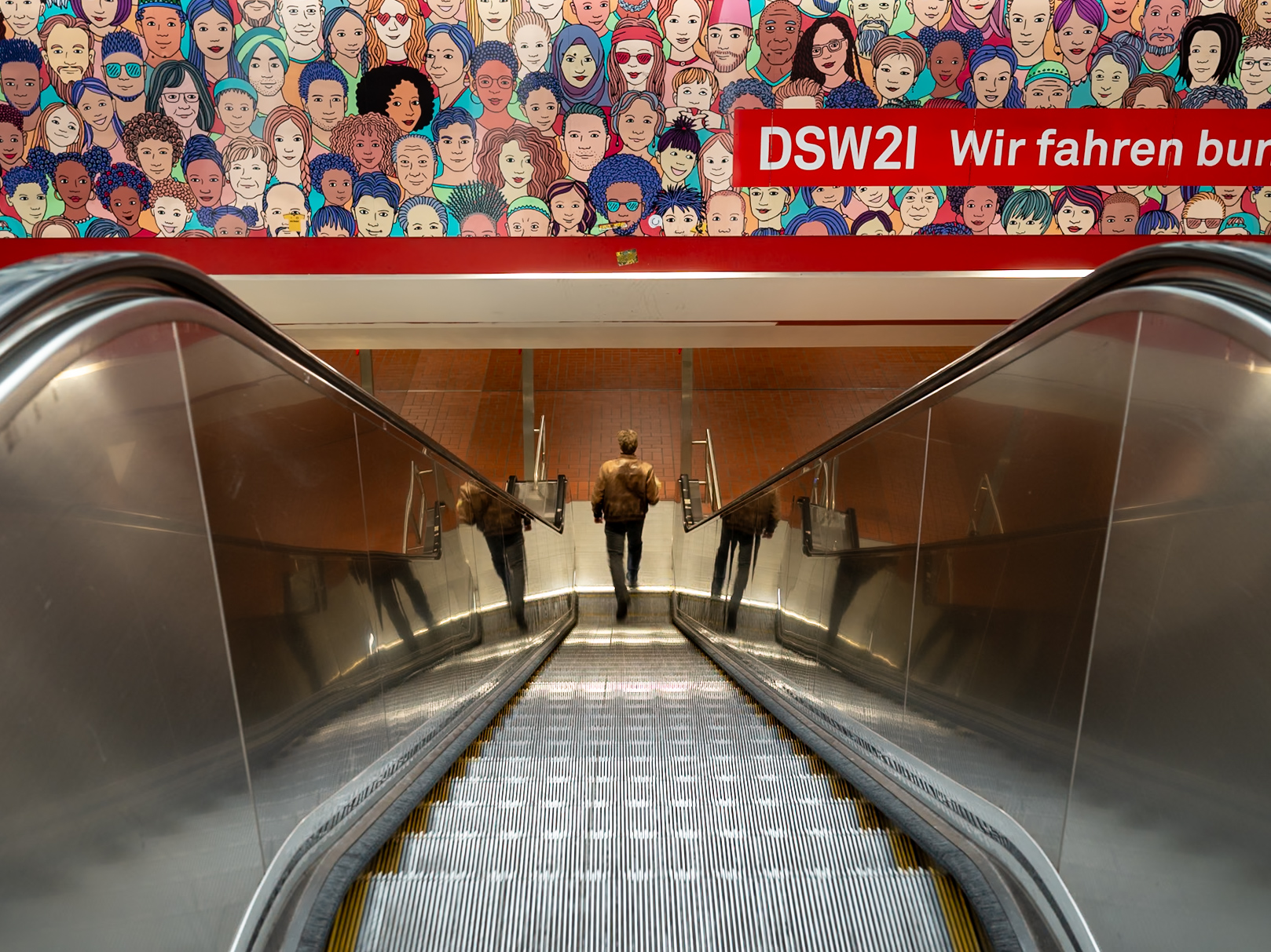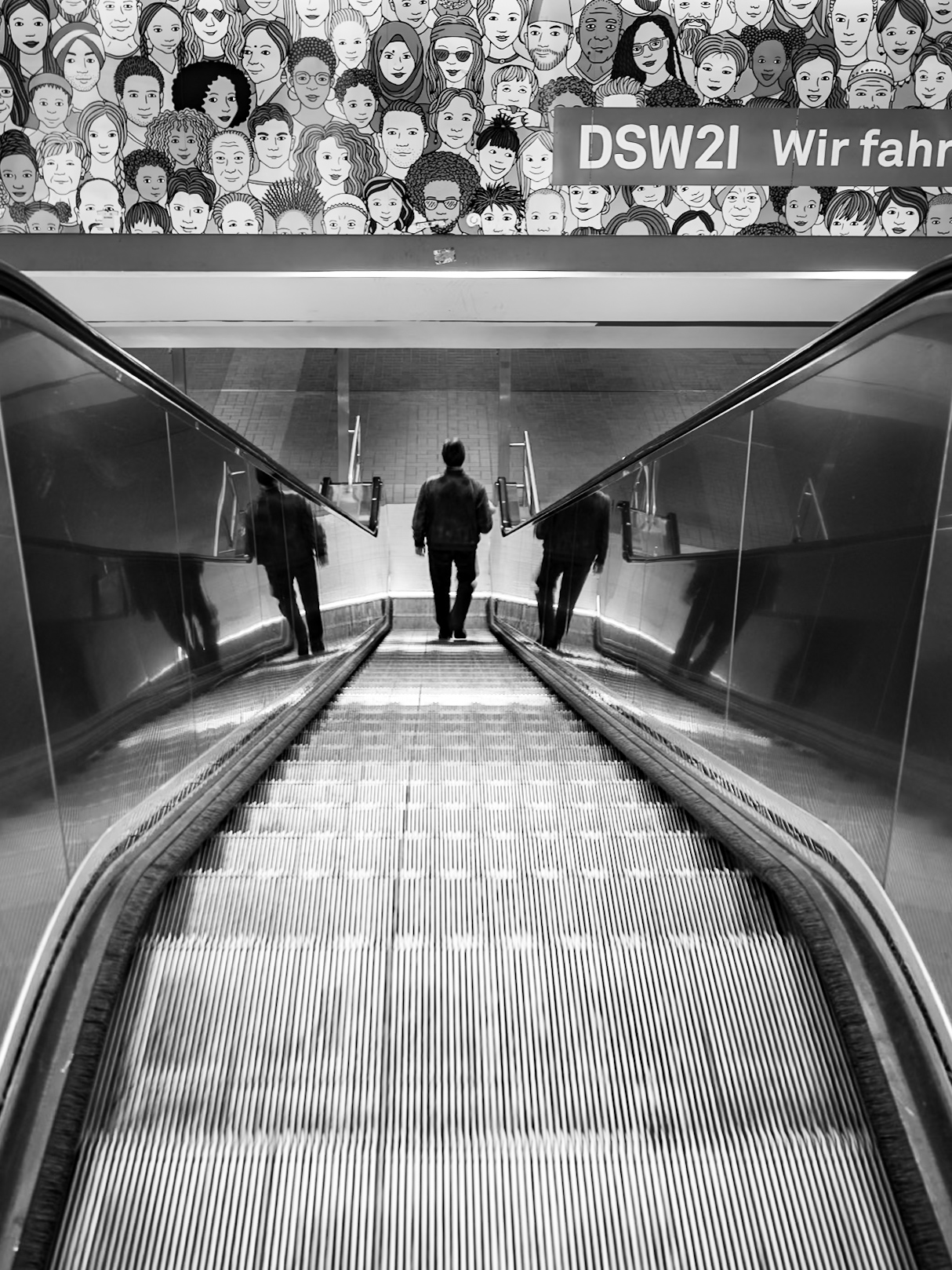 Von der weiten Sicht ging es dann buchstäblich in die Tiefe. In den U-Bahn-Stationen konnten wir die besondere Dynamik der Stadt einfangen – ein starker Kontrast zum Trubel über der Erde. Bevor es weiterging, gab es das obligatorische Kaltgetränk bei der Bergmann Bier Bude. Ein kurzes Innehalten, ein bisschen Fachsimpeln und dann weiter Richtung Stadtgarten.