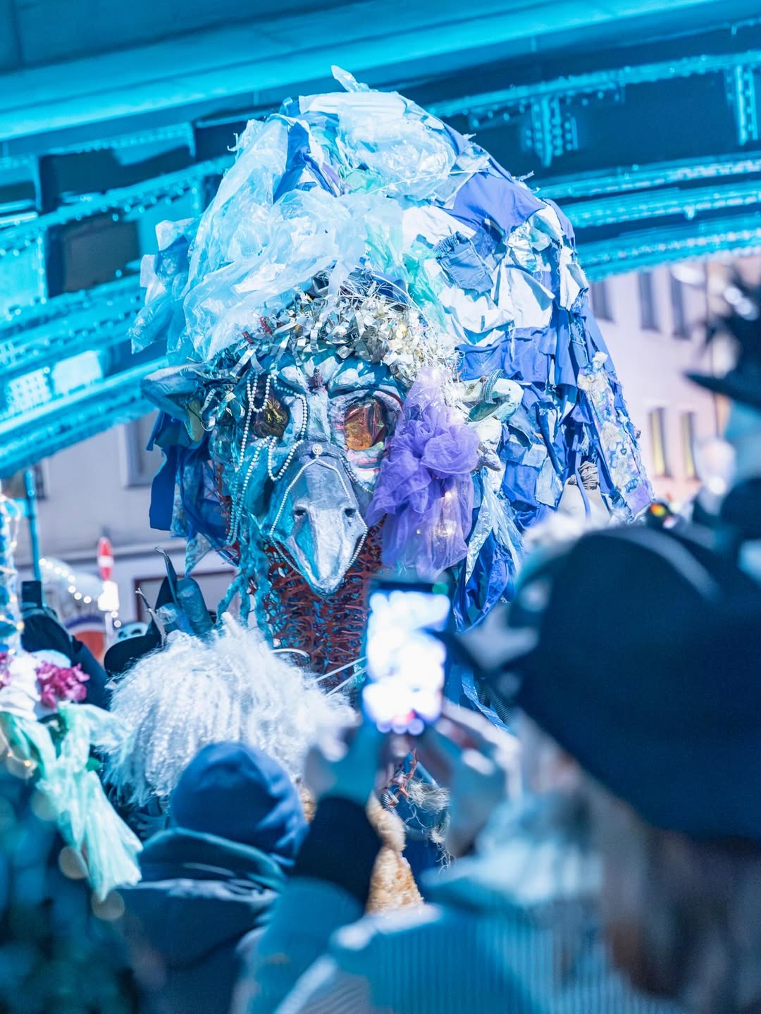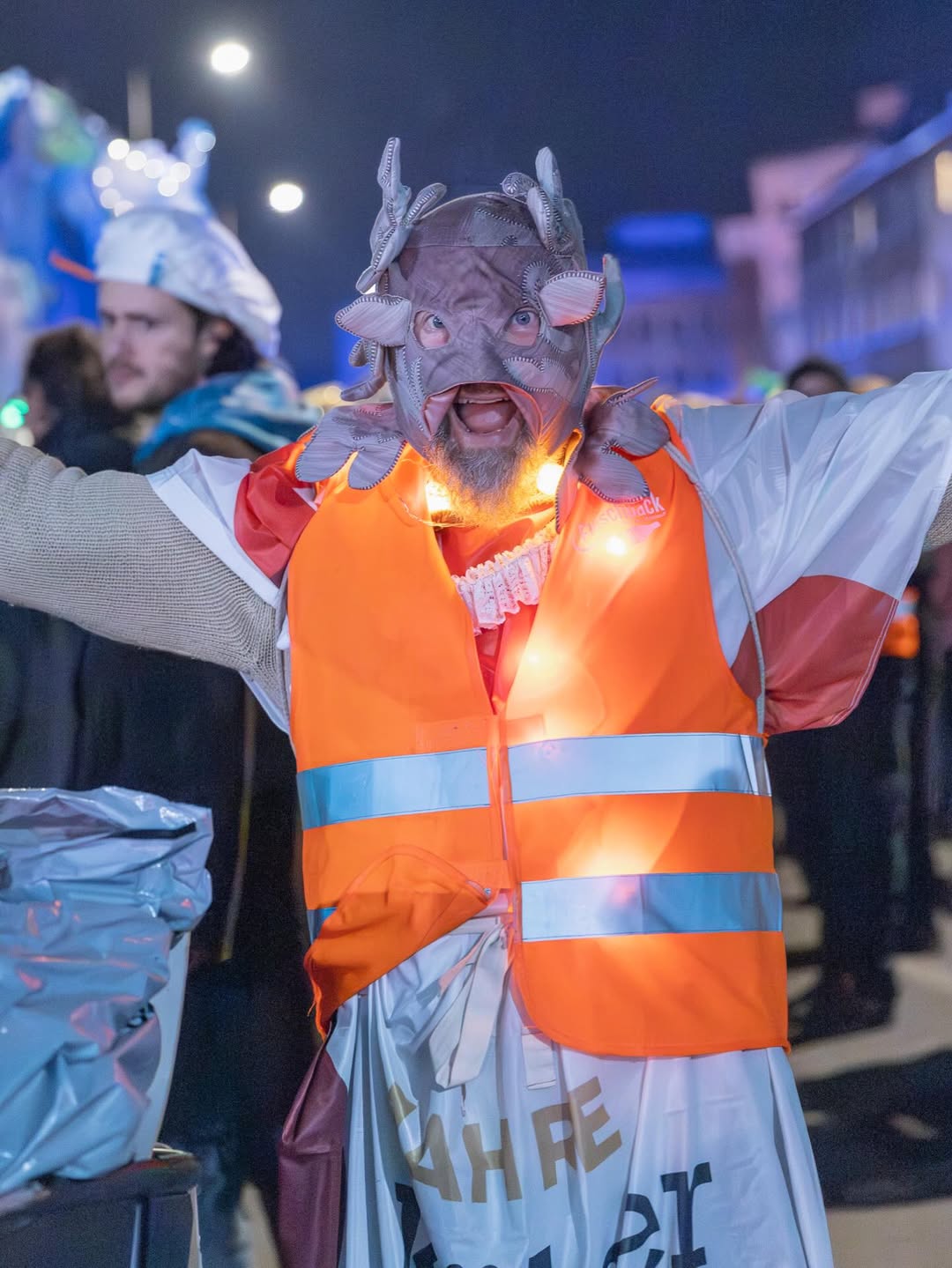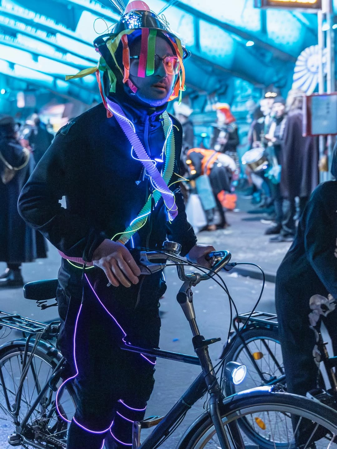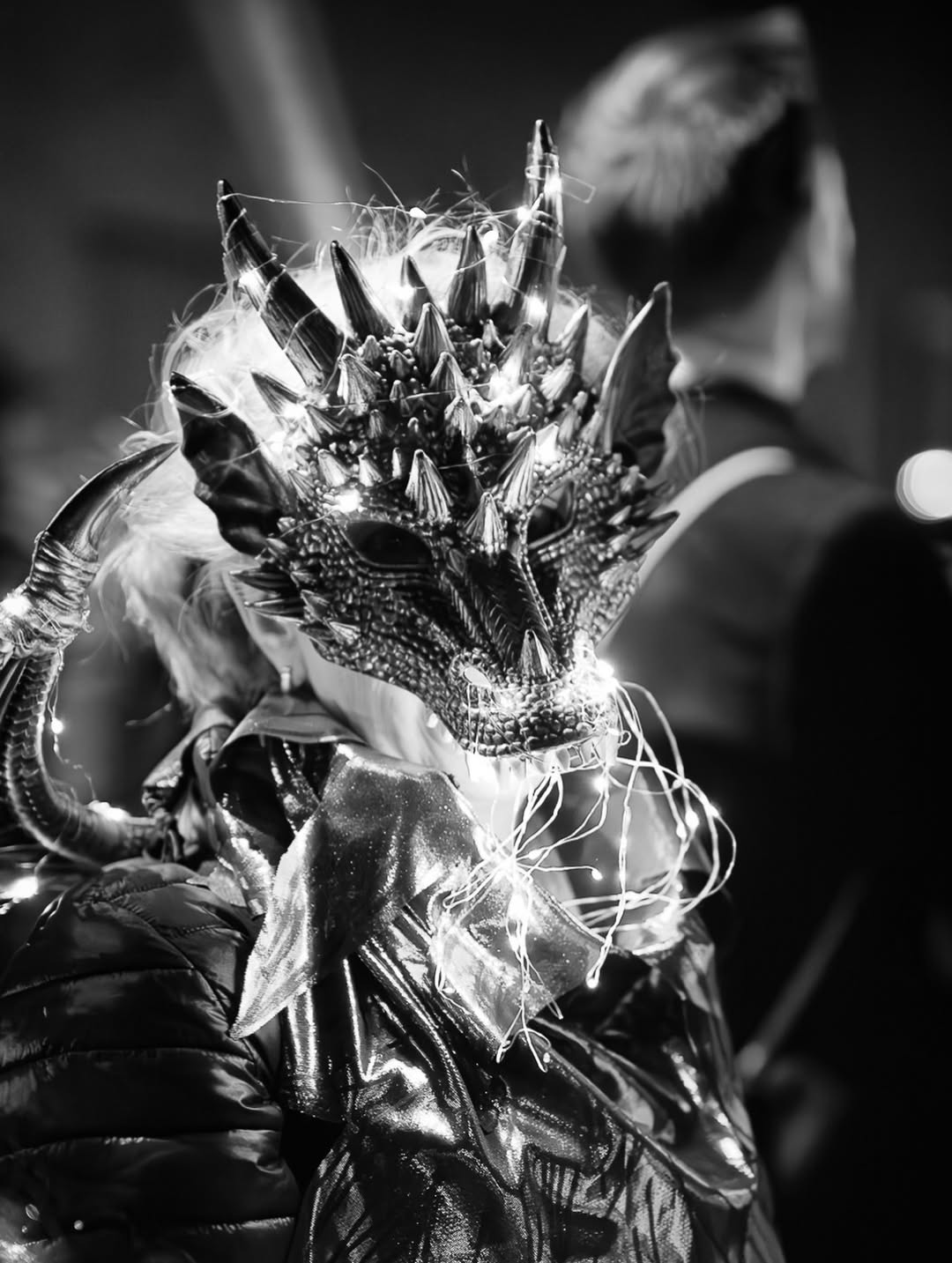 Zwischen 15 und 20 Fotograf:innen haben sich um 19 Uhr in Nippes zusammengefunden – und sich dann schnell im Strom verloren. Jeder auf der Jagd nach dem eigenen Moment. Gruselige Kostüme, schräge Verkleidungen, Lichtinstallationen direkt am und um den Körper, laute Musik, und zwischendrin Transparente gegen steigende Mietpreise. Köln halt. Aber Köln auf 180.